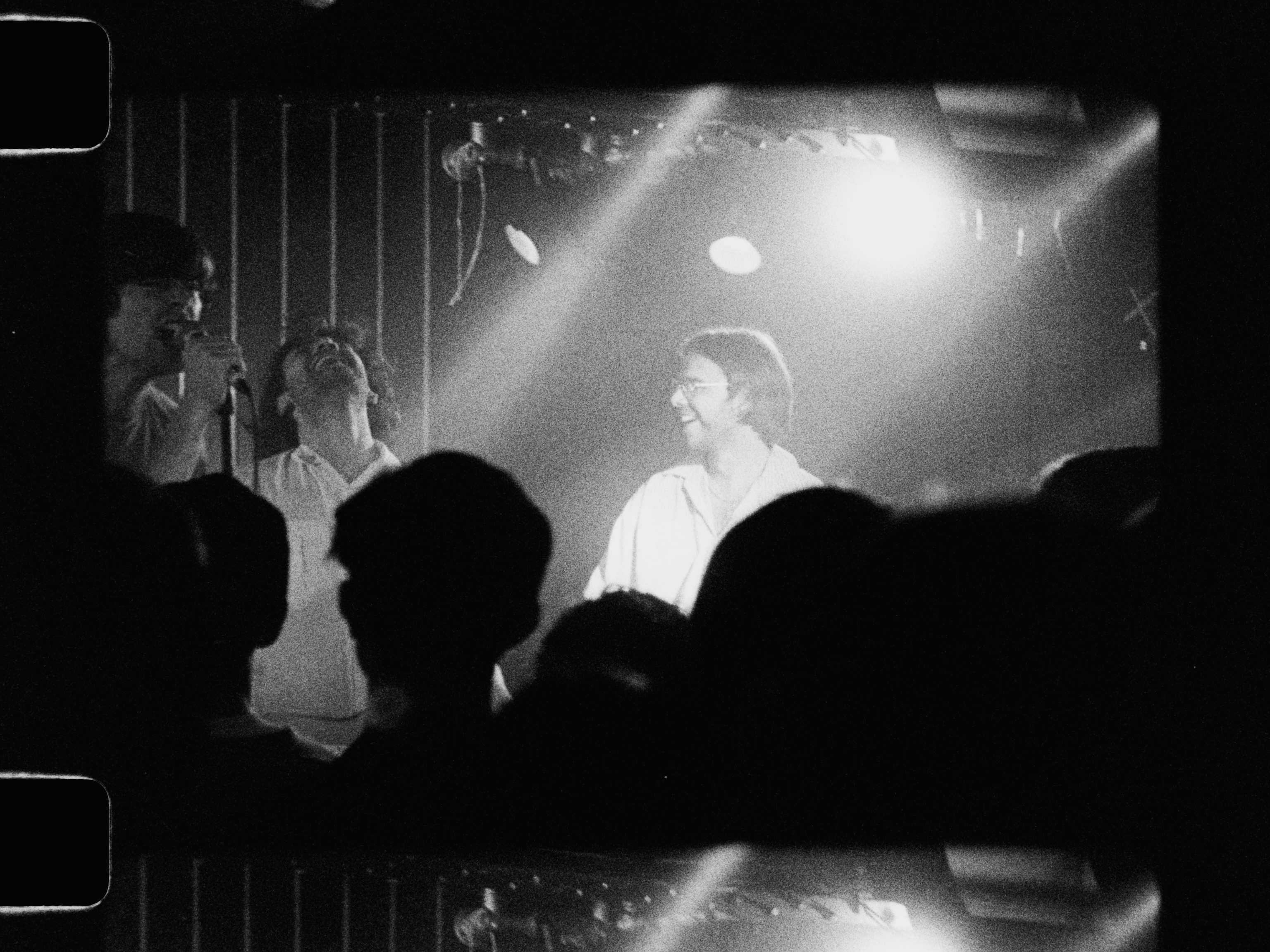 Took along my Bolex H16 M along to the Feet show at Dust in Brighton. I loaded it with some kindly donated XX Kodak stock, rated at 200asa, and was still only just about making exposure in the highlights. The crowd seemed to enjoy watching me crank up the camera, ready for the next chorus.